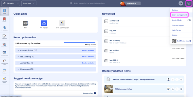 - Click on Users Management in the drop-down menu that appears
