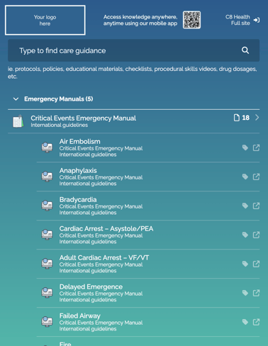 Our widget is an embedded version of your knowledge base that can be easily accessed by users directly from your intranet site and/or anesthesia stations. It makes best practices even more top of mind and easy to access.